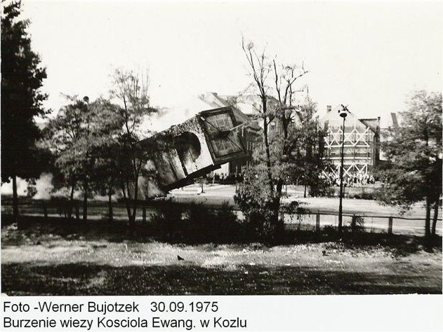 30.09.1975 zburzono wieżę po Kościele
