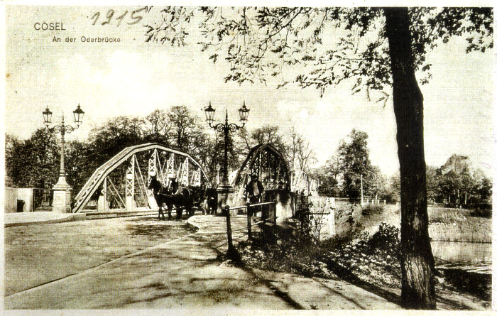 Most na rzece Odrze (pierwszy od strony Kłodnicy) pocztówka wysłana w 1915 roku
