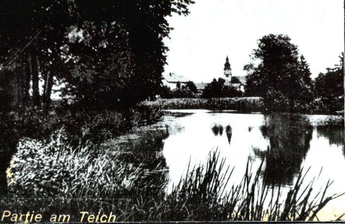 Pocztówka z Kłodnicy - widok znad stawu przy ulicy Dunikowskiego