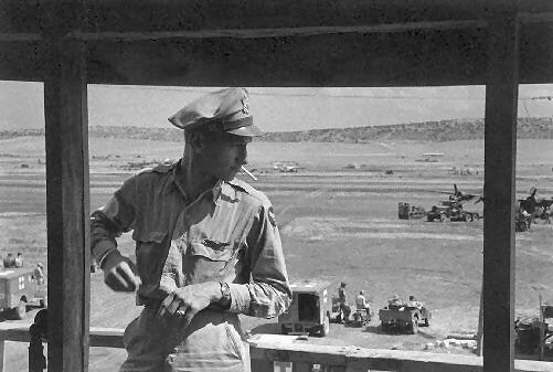 Płk.Clarence Lokker na wieży kontrolnej bazy Pantanella we Włoszech