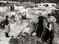 Prace przy usuwaniu szkód po bombardowaniu ZCh