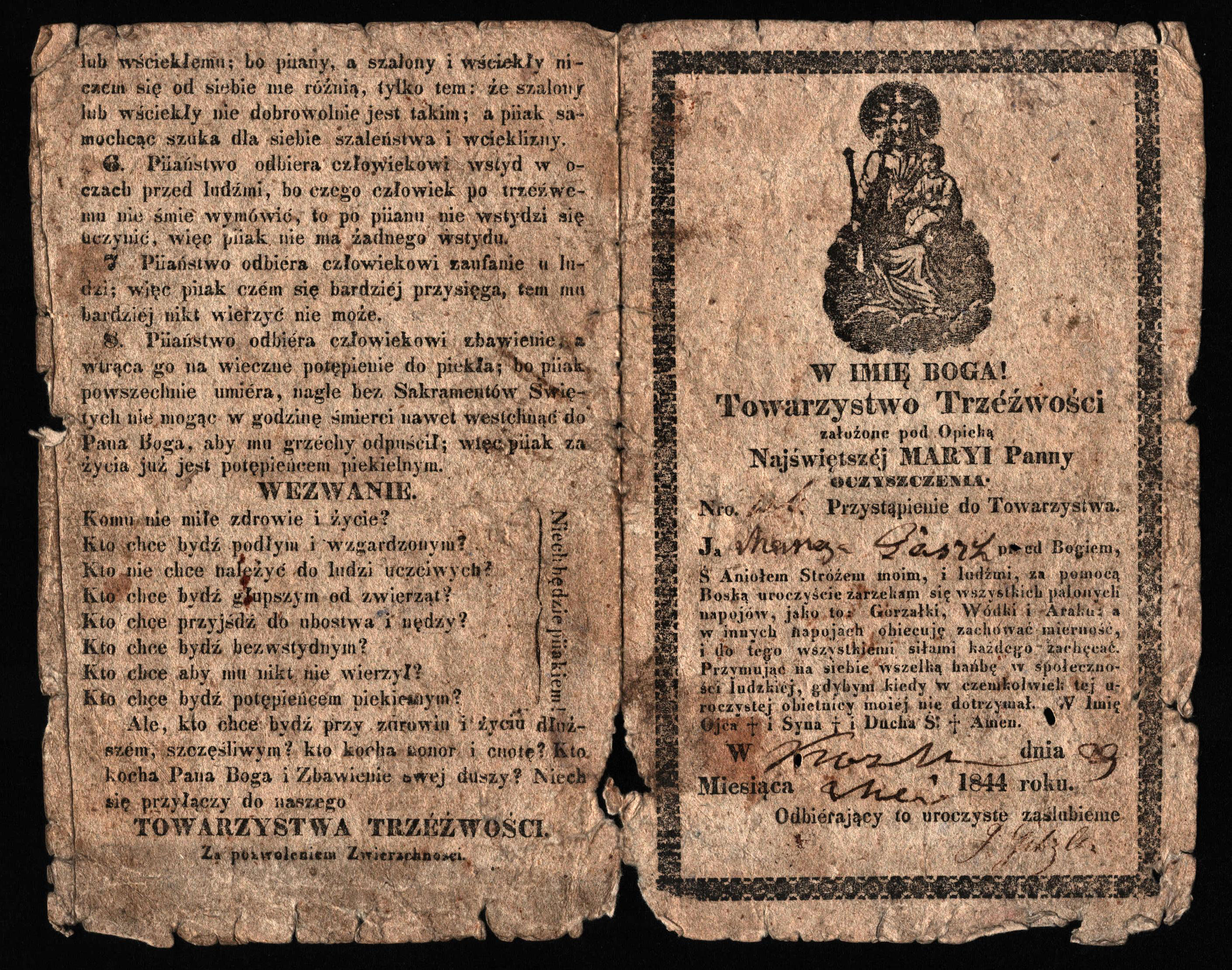 ¦luby trzeĽwo¶ci (dostałem je od Franciszka B±kowskiego, ciekawostk± jest że w KoĽlu roku 1844 tekst jest polski.