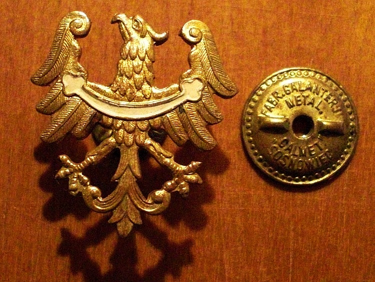 Teraz cos z falerystyki, orzełek ¶l±ski wykonany w fabryce galanterji metalowej " Gamet" w Sosnowcu. Pochodzi on z przełomu lat 20-stych i 30-stych 20 wieku.