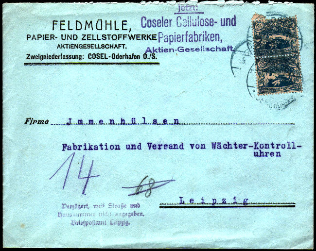 informujący o zmianie nazwy fabryki z Feldmühle na Kozielska Fabryke
