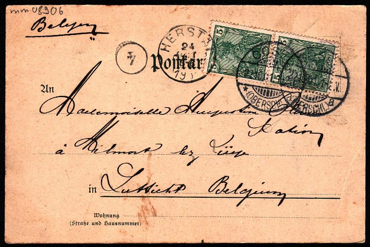 Stara pocztówka (widok z okolic kościoła p.w.św. Zygmunta i św. Jadwigi Śląskiej w kierunku rynku, w głębi widoczny kościół ewangelicki - strona na korenspondencję).