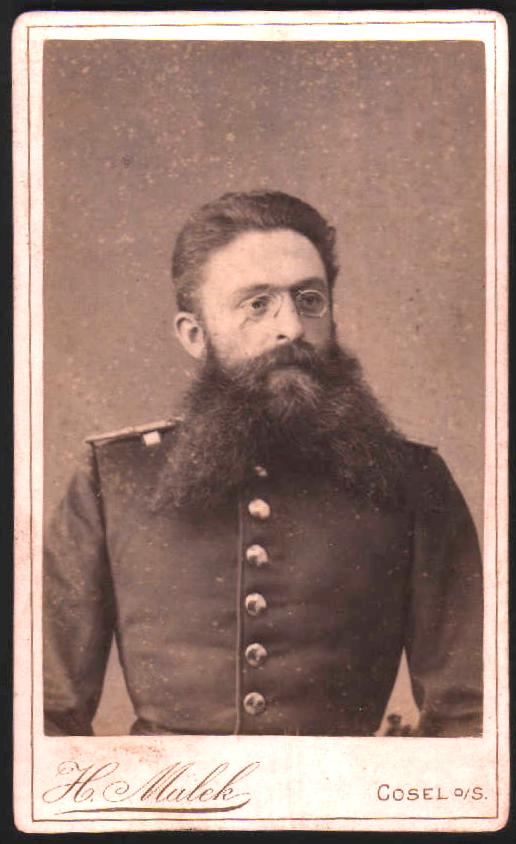 Portret wizytowy oficera kozielskiego garnizonu wykonany około roku 1890 w Atelier Malek. Trzeba przyznać, że brodę ma ten pan imponującą!