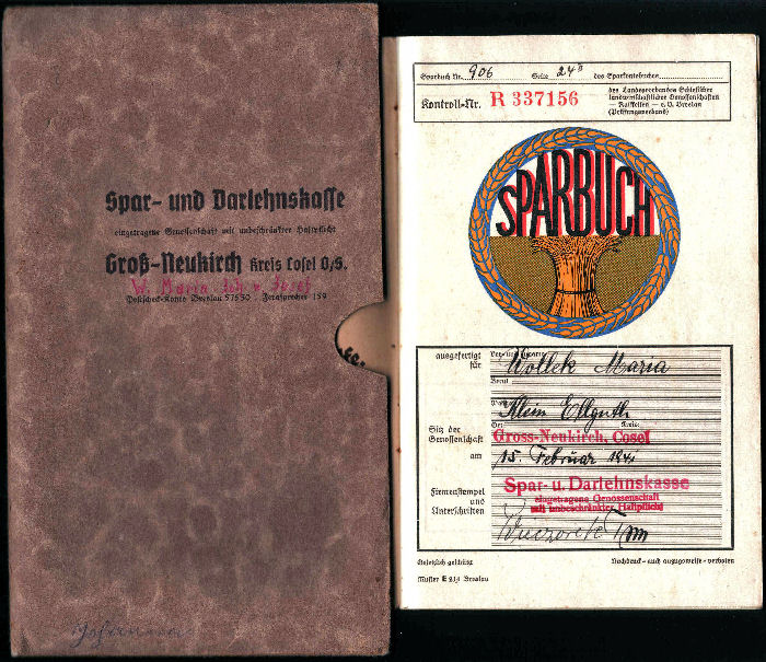 Książeczka oszczędnościowa wystawiona przez kasę pożyczkową w Polskiej Cerekwi.