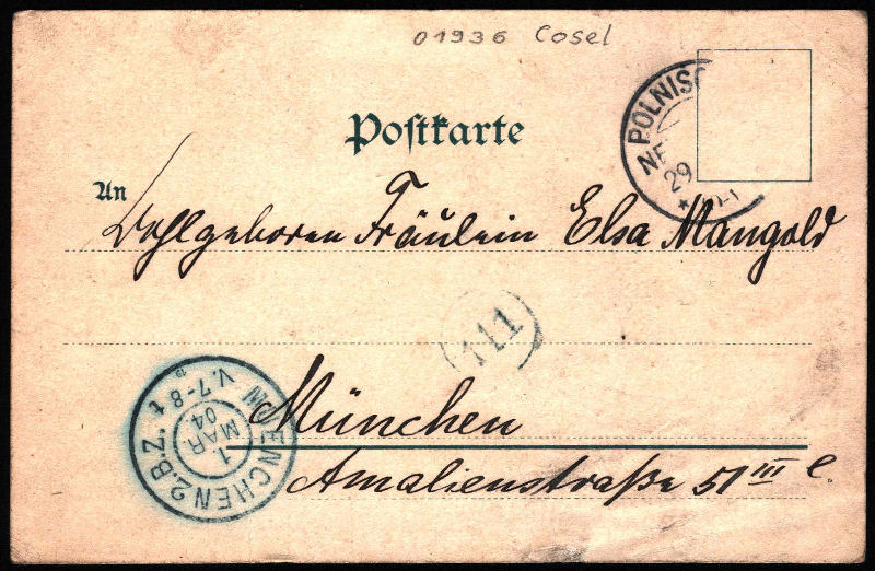 Na stronie korespondencyjnej widoczny jest rzadki stempel listowy Reserve Lazarett Cosel Ober Schl.