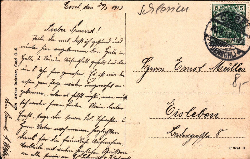 Widokówka z pomnikami oraz promenada w KoĽlu z dnia 30 marca 1913 roku Strona korespondencyjna