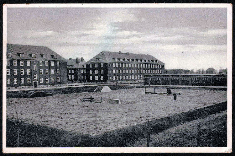 Skan nowej kartki z 3.07.1938 roku, z widokiem na plac i zabudowania koszar w KoĽlu. Kartkę wydrukowała firma. Kino-Foto H. Malaika, Reigersfeld (Bierawa) O.-S.