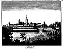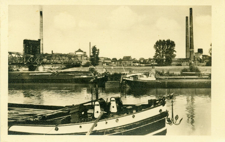 Blick auf die Zellstofffabrik, links hinter der Eisenbahnbrücke -