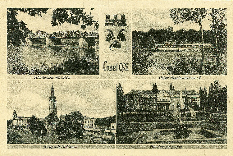Pocztówka z widokiem na most drogowy z jazem (od strony Kłodnicy),