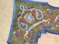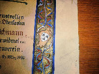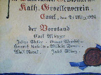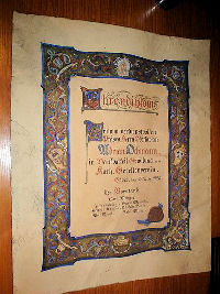 Duży stary, ręcznie malowany na czerpanym papierze dyplom, pisany gotykiem