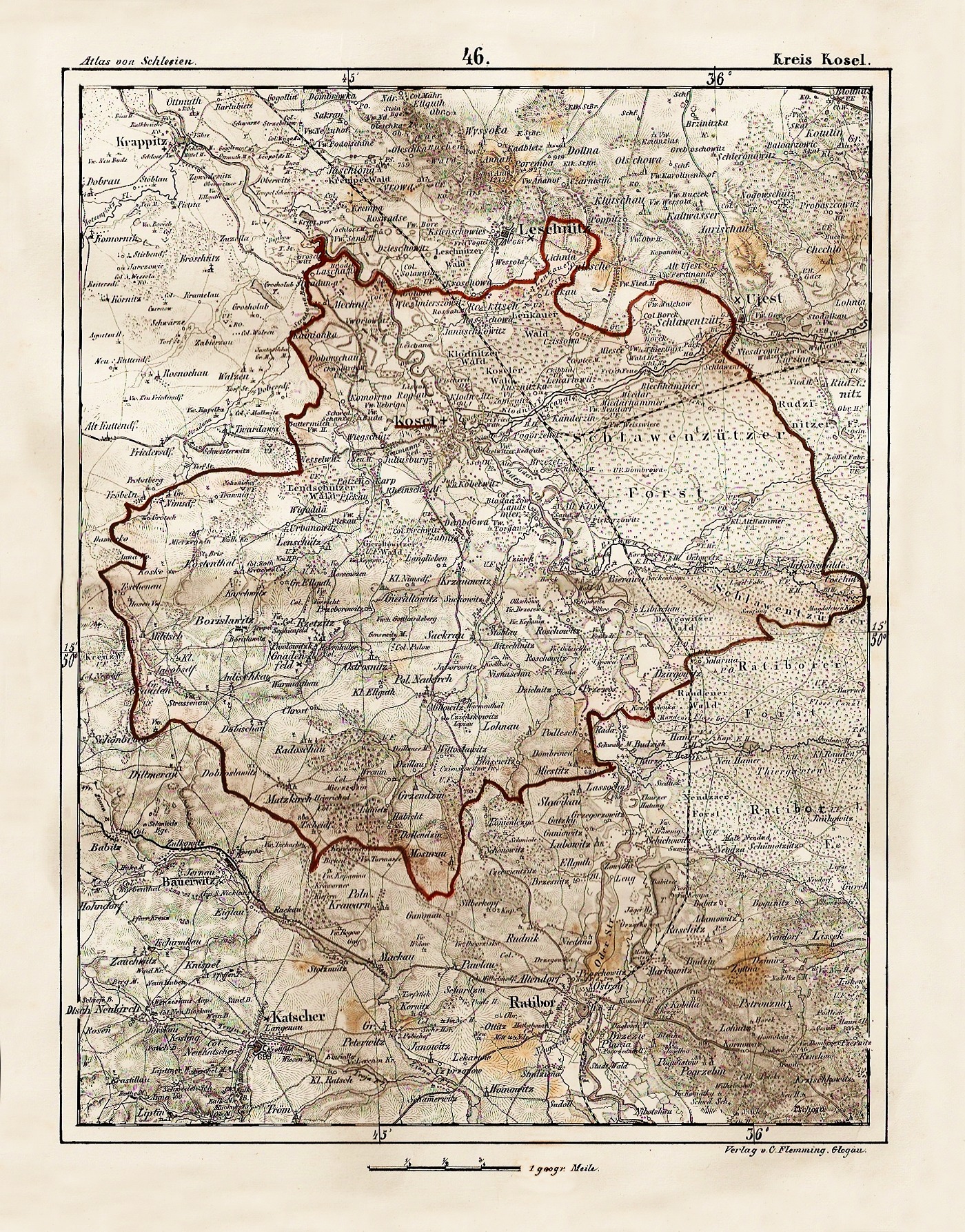 Mapa powiatu kozielskiego z 1850 roku