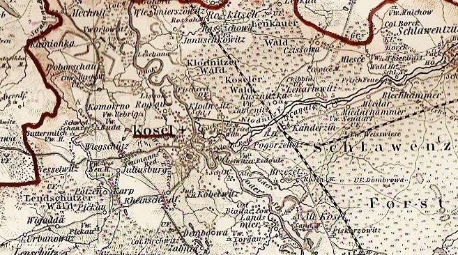 Fragment mapy powiatu kozielskiego z 1850 roku