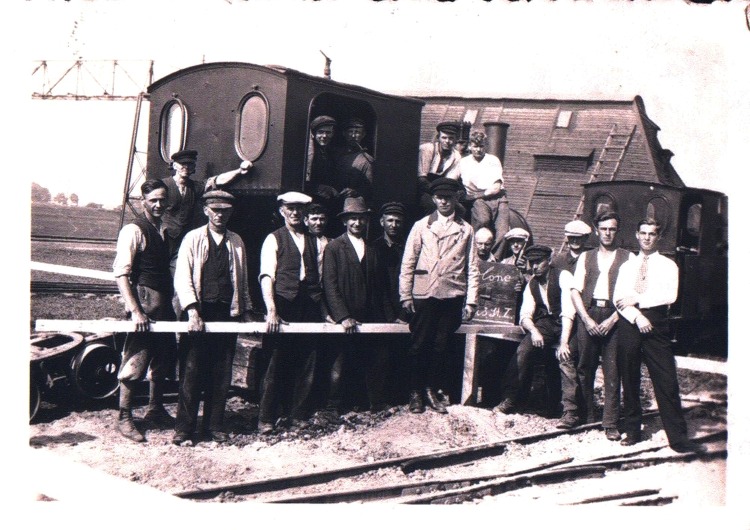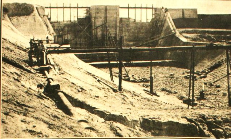 Pracownicy zatrudnieni na budowie śluzy w Kłodnicy (1938 rok).