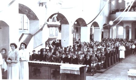 | Wnętrze Kościoła Matki Boskiej Bolesnej sprzed 1945 roku | |||||