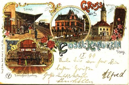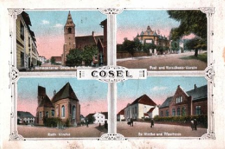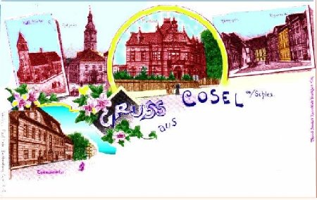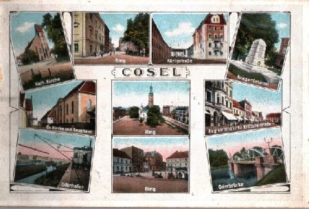 Kolorowa pocztówka z Koźla . (z roku 1941)
