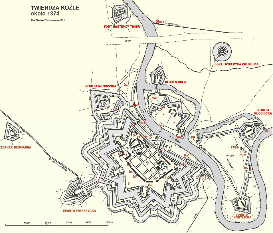 Plan twierdzy KoĽle z 1874 roku opracował : Mariusz Wojciechowski - 1999 r.