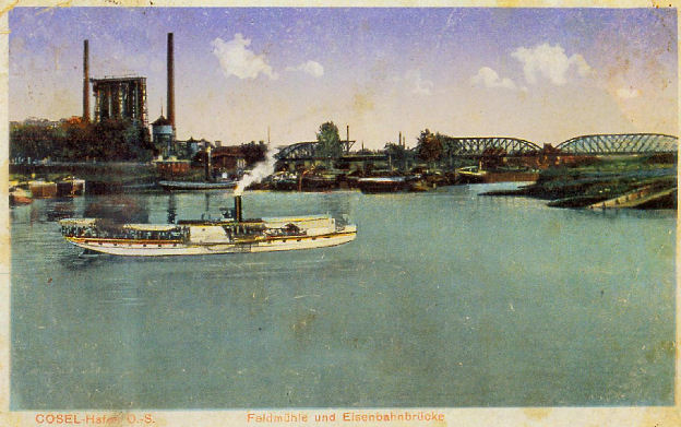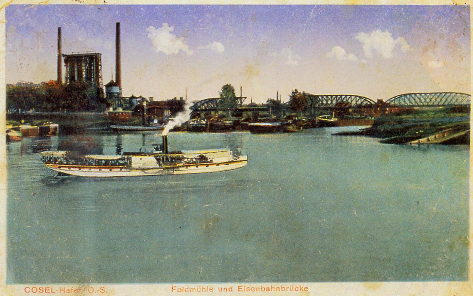 którym widać przęsło mostu wysadzone przez powstańców śląskich |