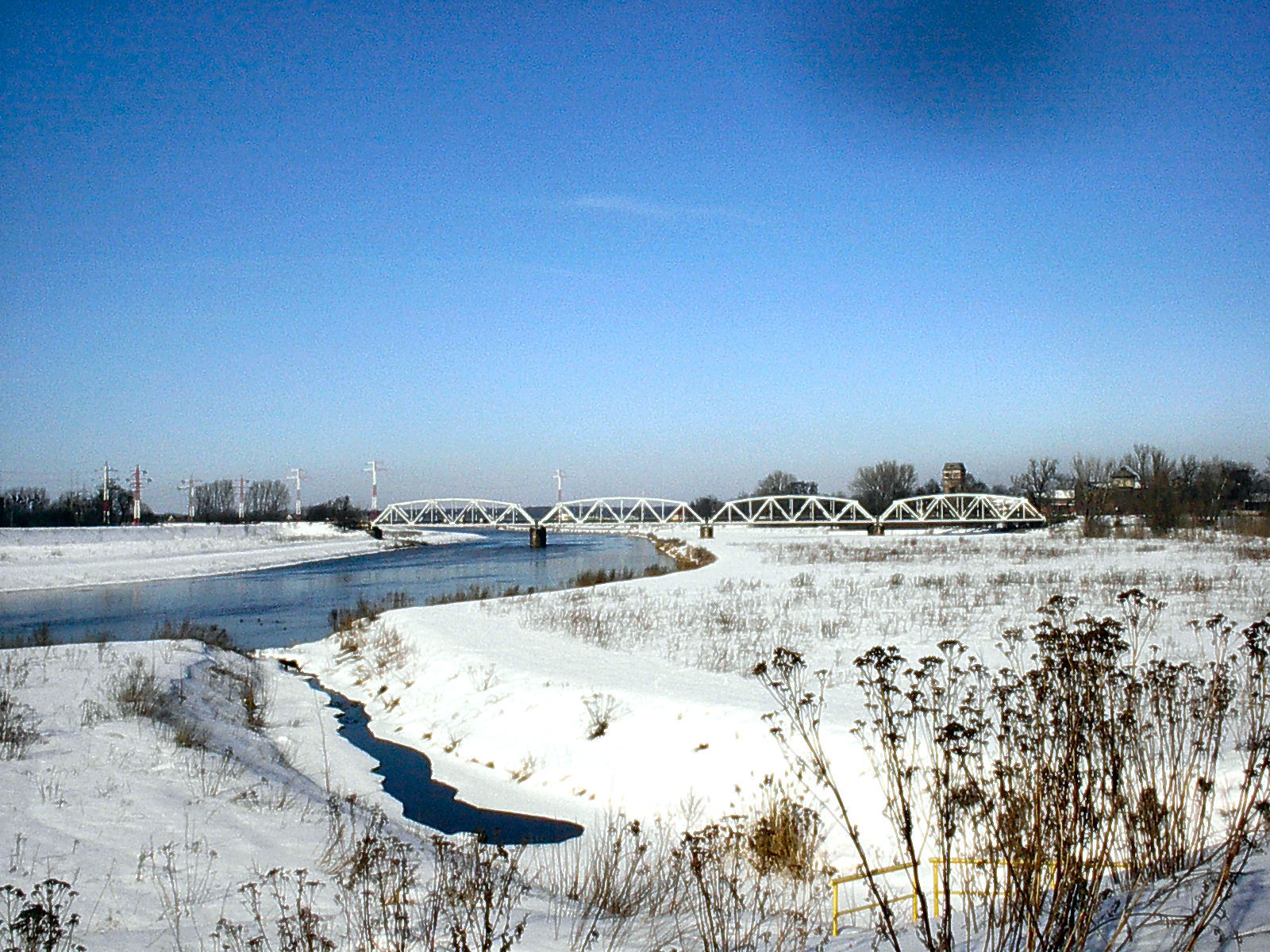 kolejowego oraz piaszczysta plaża na brzegu Odry (od strony Rogów).