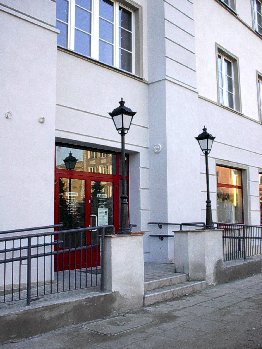 Wejście do Biblioteki Miejskiej w Rynku.