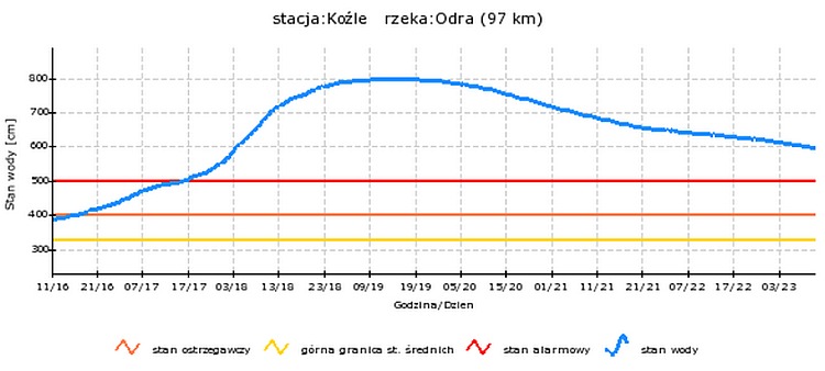 Ostatni najwyższy stan - 800 cm zanotowano 19 maja o godzinie 19:00 Od tej chwili woda opadła 409 cm ![]() ![]() |