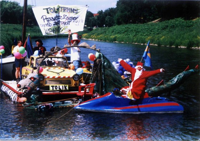 q imprezę na starcie w Raciborzu, zwodowanie dziwnych obiektów pływających, start samochodowego rajdu turystycznego,