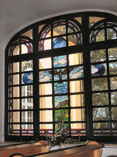 przedwojennego wystroju. Jej obecny wygląd nawiązuje do stylu całego zamku.