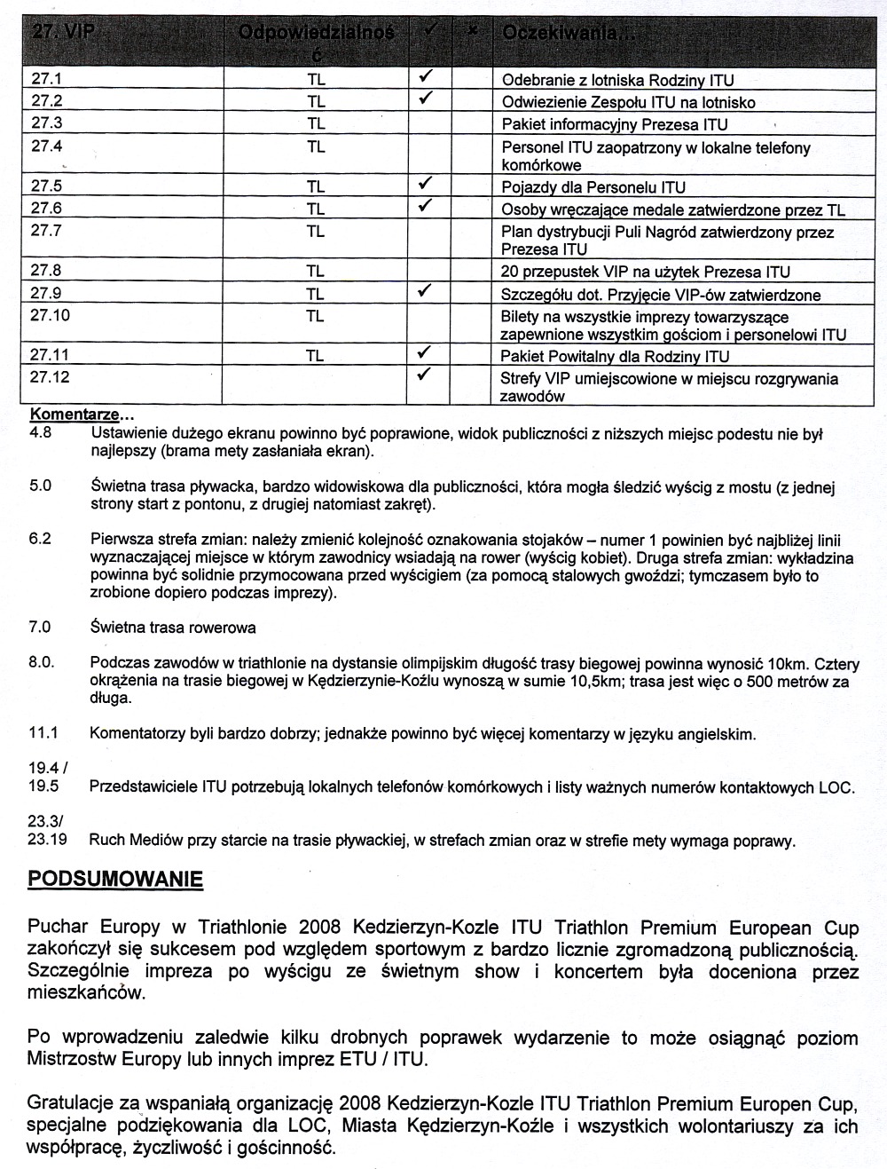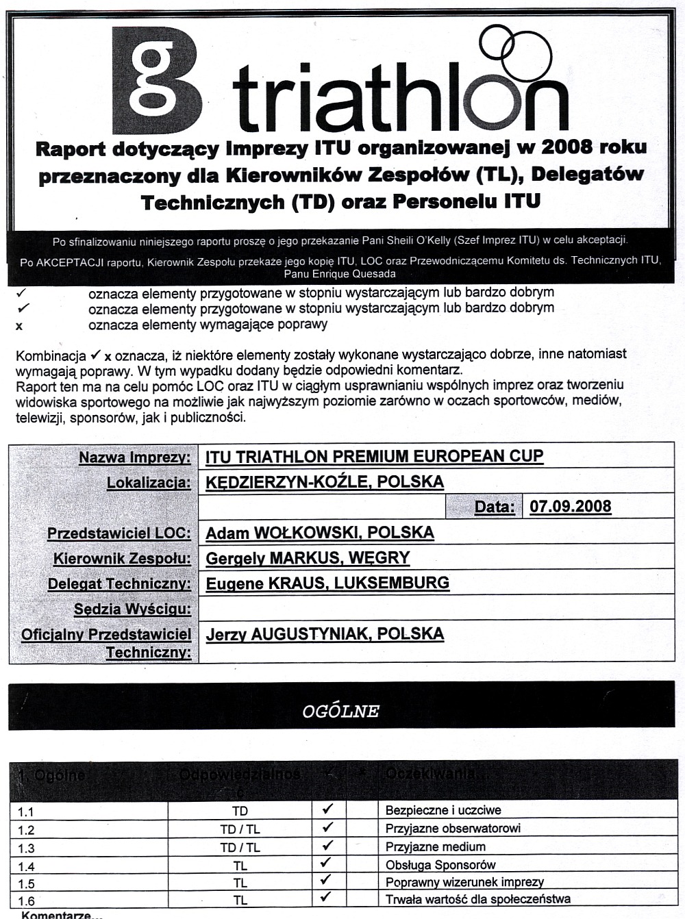 | FRAGMENT RAPORTU DOTYCZĄCEGO IMPREZY ITU ORGANIZOWANEJ W 2008 roku - strona tytułowa - podsumowanie |